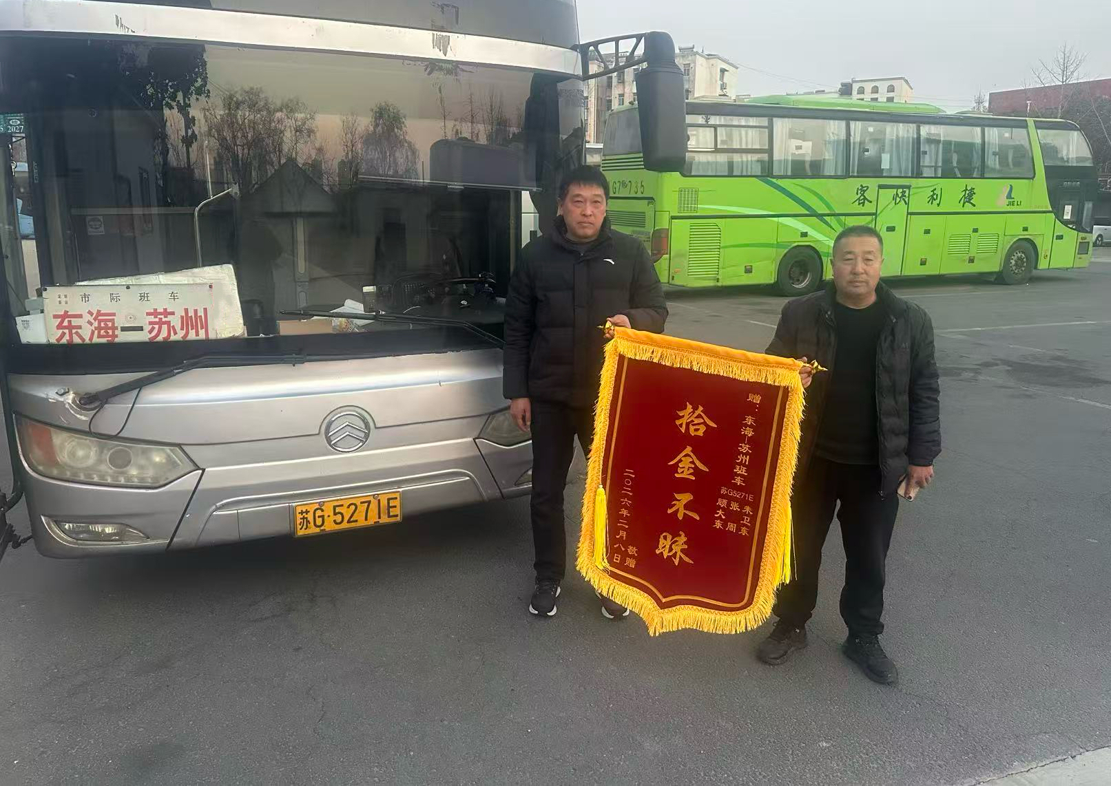近日,蘇G5271E蘇州至東??瓦\班車完成當日運營任務(wù)后,駕駛員朱衛(wèi)東、張周、乘務(wù)員顧大東三位師傅像往常一樣開展收車清掃工作,正當他們仔細擦拭車廂、整理座椅時,意外在座位旁發(fā)現(xiàn)了一個遺落的提包,打開查看后,里面的財物讓三位師傅心頭一緊,現(xiàn)金與貴重首飾整齊擺放,他們當即意識到,這一定是某位乘客匆忙下車時不慎遺落的。