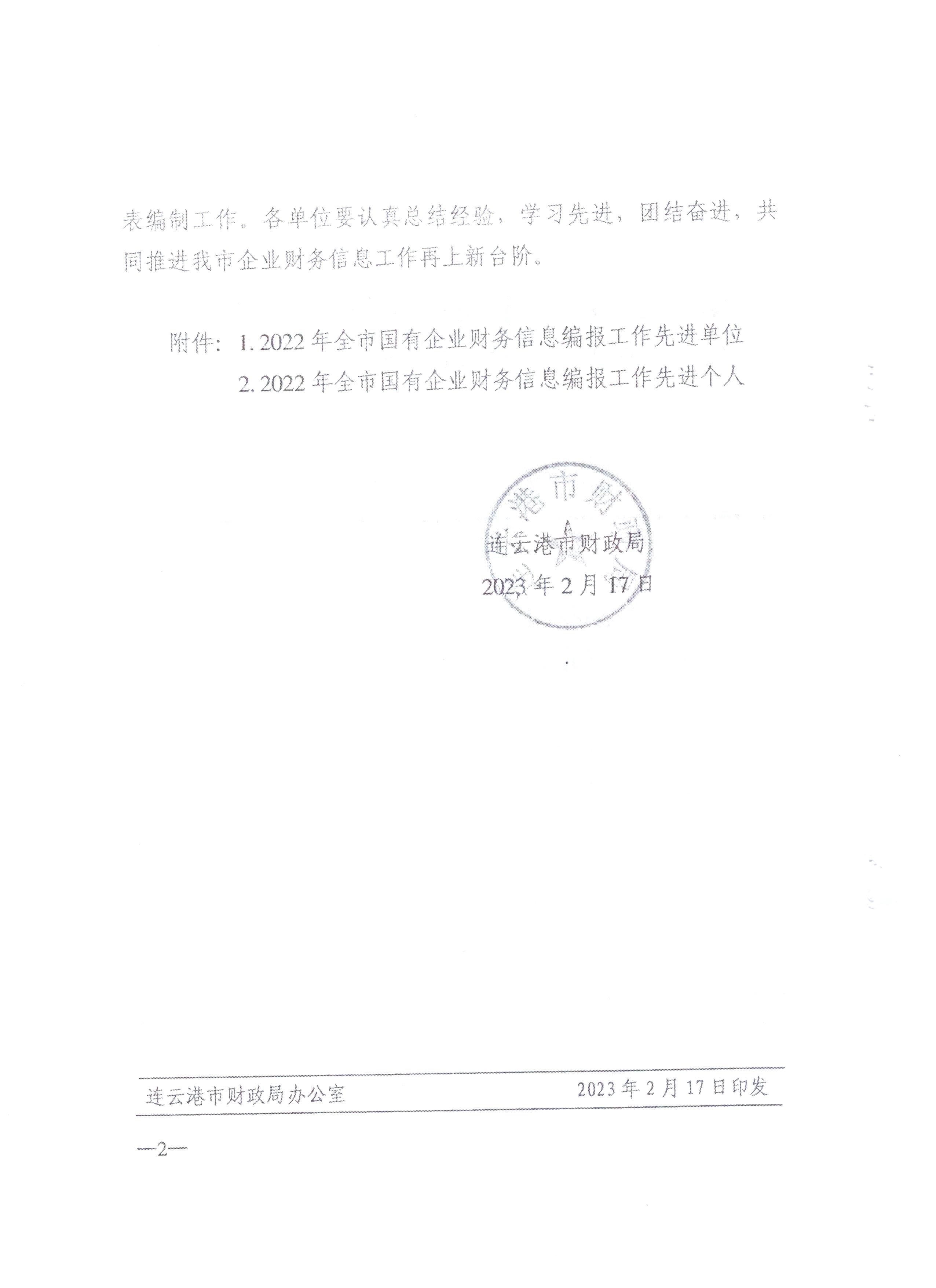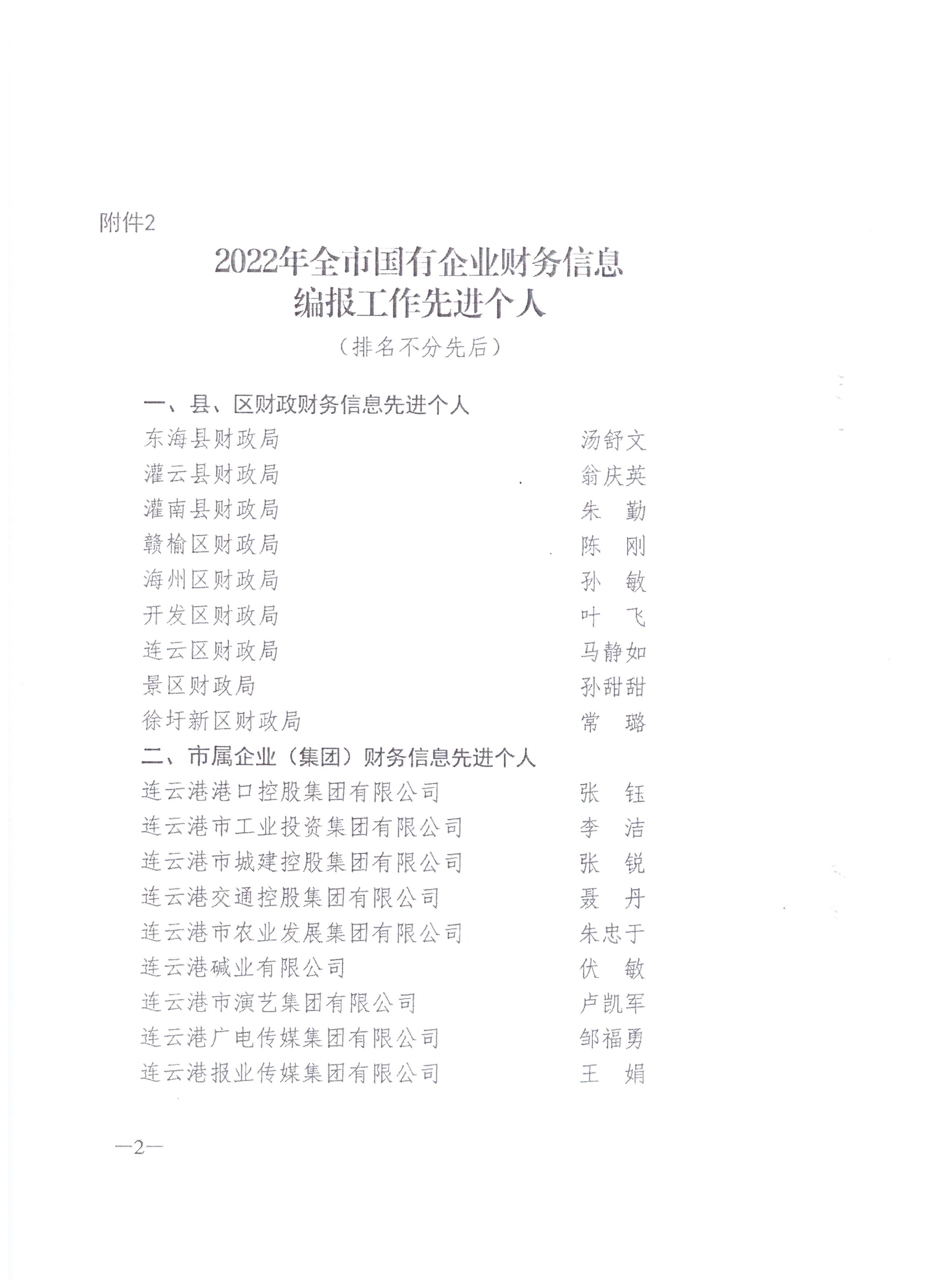 日前,從連云港市財政局下發(fā)的關(guān)于2022年企業(yè)財務(wù)快報編制工作綜合考評文件獲悉,集團(tuán)被評為全市財務(wù)信息工作先進(jìn)單位,集團(tuán)財務(wù)融資部聶丹被評為財務(wù)信息工作先進(jìn)個人。