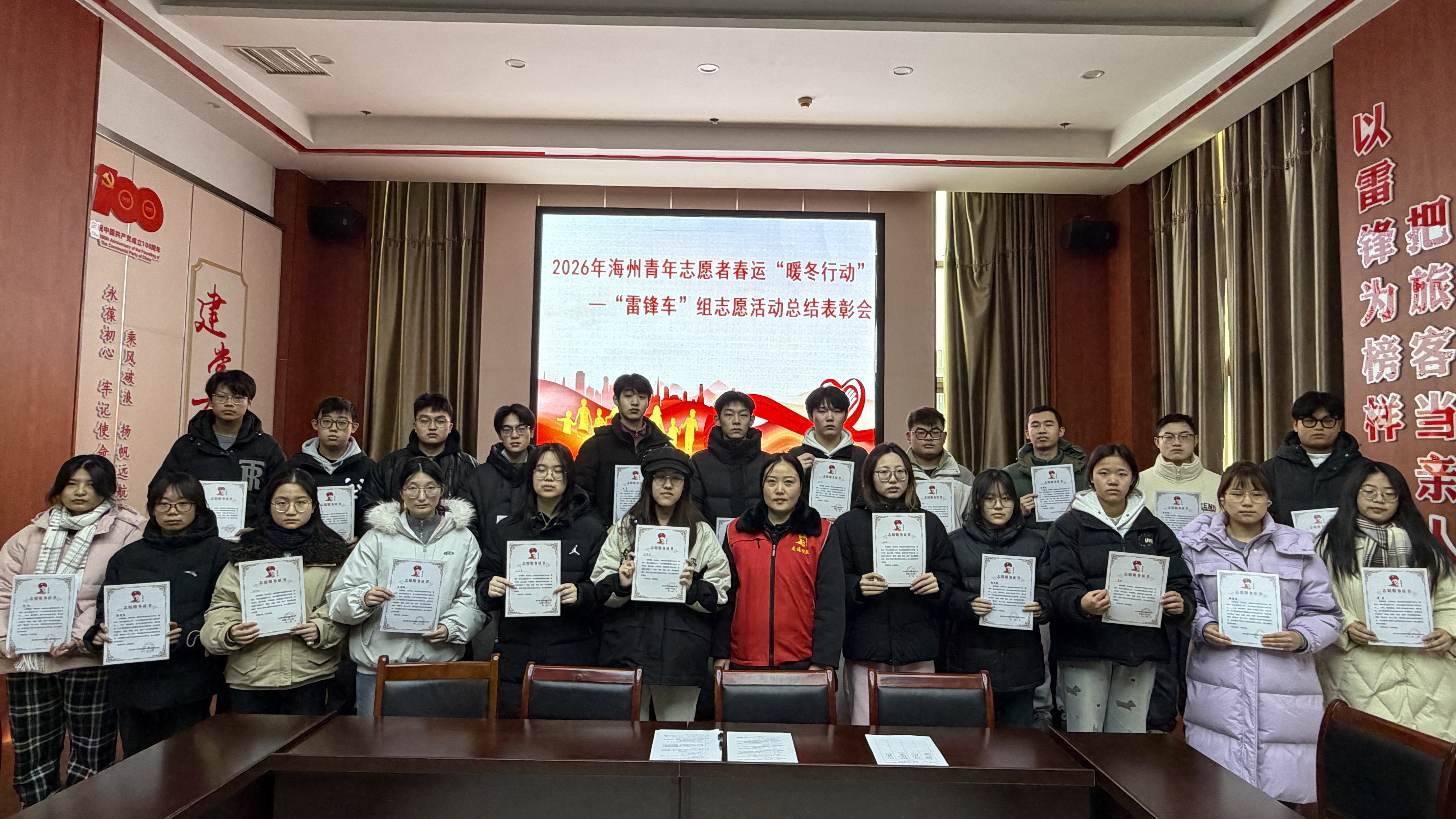 會(huì)上,相關(guān)負(fù)責(zé)人對(duì)本次春運(yùn)“暖冬行動(dòng)”中“雷鋒車(chē)”組志愿活動(dòng)的整體工作進(jìn)行全面回顧總結(jié)。2026年春運(yùn)期間,25名高校青年志愿者在“雷鋒車(chē)”組的統(tǒng)一組織與帶領(lǐng)下,堅(jiān)守交通樞紐、客運(yùn)站點(diǎn)等一線服務(wù)崗位,以飽滿(mǎn)熱情、專(zhuān)業(yè)素養(yǎng)和暖心服務(wù),積極開(kāi)展客流引導(dǎo)、票務(wù)咨詢(xún)、行李幫扶、重點(diǎn)旅客照顧、文明勸導(dǎo)、應(yīng)急協(xié)助等志愿服務(wù),用實(shí)際行動(dòng)守護(hù)旅客平安、順暢、溫馨出行,有效緩解春運(yùn)期間服務(wù)壓力,贏得廣大旅客、車(chē)站工作人員及社會(huì)各界的一致好評(píng)與廣泛贊譽(yù)。志愿者們不畏嚴(yán)寒、堅(jiān)守崗位、無(wú)私奉獻(xiàn),充分展現(xiàn)了新時(shí)代海州青年向上向善、勇于擔(dān)當(dāng)?shù)木耧L(fēng)貌,讓“志愿紅”成為今年春運(yùn)路上最溫暖、最動(dòng)人的風(fēng)景。