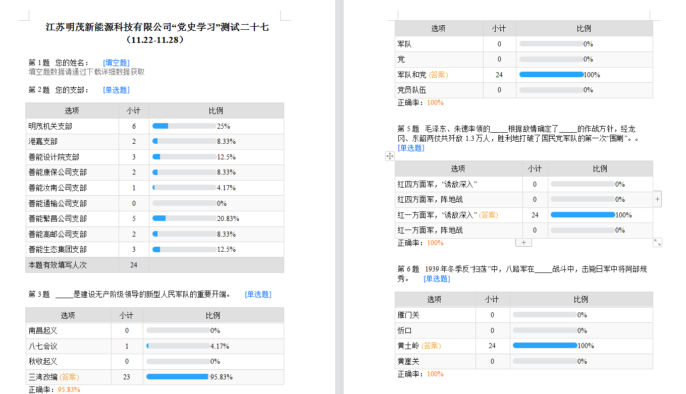 為深入開展黨史學習教育,創(chuàng)新黨史知識學習的方法和途徑,營造更加濃厚的學習氛圍,讓黨史學習教育“活”起來,明茂公司積極拓寬黨史學習渠道,強化學習覆蓋面和參與度,創(chuàng)新理論學習方式,以一部手機為依托每周開展微信黨史線上答題測試,通過融入知識性、趣味性、便捷性為一體的知識測試,及時跟蹤個人測試情況,利用碎片時間,隨時隨地檢驗學習成果,截止目前已開展28期。
