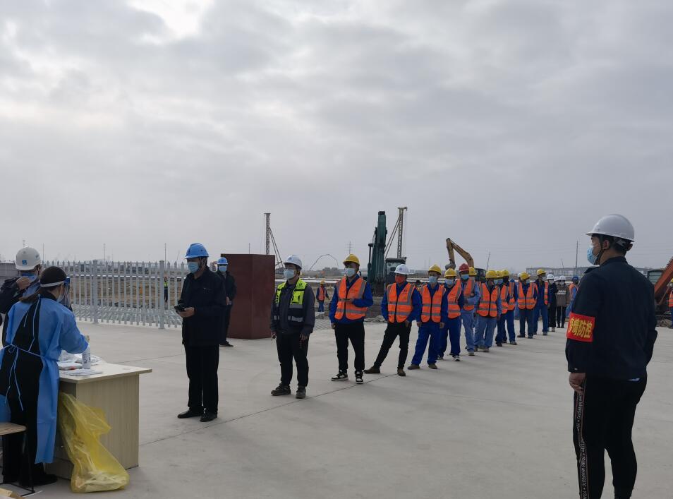 為進(jìn)一步做好建筑工地疫情防控工作,筑牢疫情防控安全防線,確保LNG儲配站項(xiàng)目工期順利推進(jìn),在信泰項(xiàng)目部努力下日前與燕尾港鎮(zhèn)海濱衛(wèi)生院溝通協(xié)調(diào)開展“核酸檢測進(jìn)工地”工作。