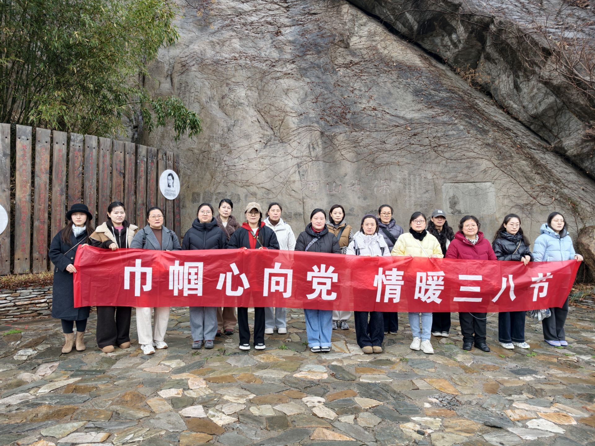 首先大家來到在云臺山區(qū)域保存的抗日石刻,石刻上字跡間猶帶硝煙,真實反映了抗日戰(zhàn)爭初期中國守軍的悲壯歷史與不屈斗志,聽了講解員細(xì)致生動的講解后,女職工們對這段凝固于山石間抗戰(zhàn)歷史與民族精神有了深刻的感悟。