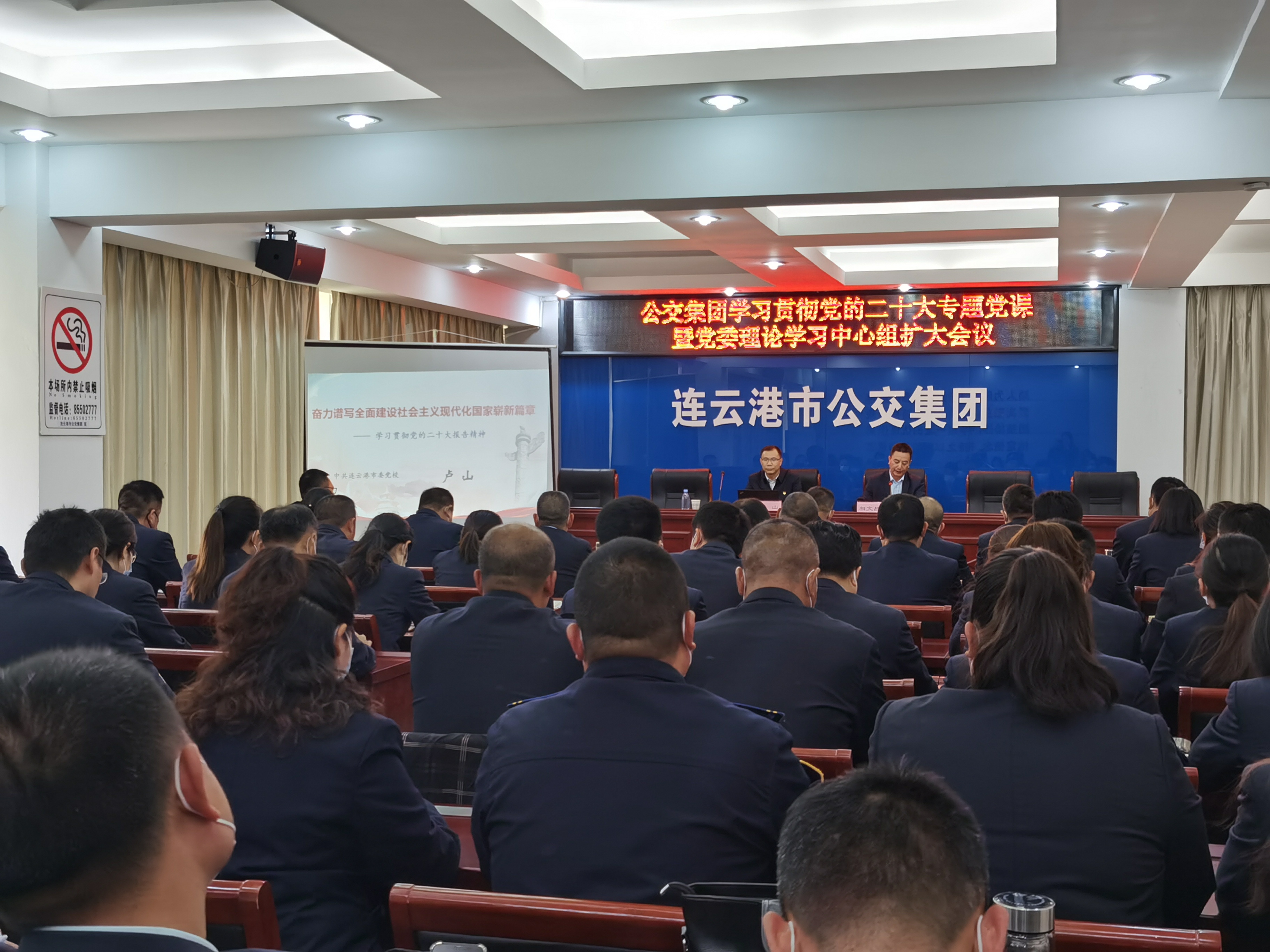 為全面學習、把握和落實黨的二十大精神,引導全體黨員干部職工深刻領悟“兩個確定”的決定性意義,增強“四個意識”、堅定“四個自信”、做到“兩個維護”,持續(xù)深入推進黨員干部職工的思想建設,公交集團黨委于5月10日下午開展學習貫徹黨的二十大專題黨課暨黨委理論學習中心組擴大會議。集團領導班子成員、全體中層黨員干部、基層三級黨員干部、黨務工作者及黨員代表參加會議,會議由集團黨委委員、副總經理相文昌主持。