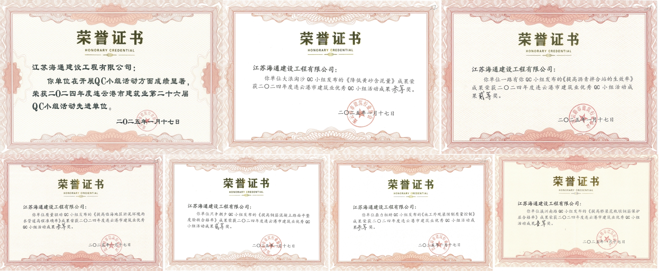 近日,江蘇海建公司組織6項(xiàng)QC小組參加連云港市建筑行業(yè)協(xié)會(huì)舉辦的2024年度連云港市建筑業(yè)優(yōu)秀QC成果發(fā)布會(huì),經(jīng)專家組打分點(diǎn)評(píng),榮獲一等獎(jiǎng)1項(xiàng)、二等獎(jiǎng)2項(xiàng)、三等獎(jiǎng)3項(xiàng),江蘇海建公司被評(píng)為2024年度連云港市建筑業(yè)第二十六屆QC小組活動(dòng)先進(jìn)單位。
