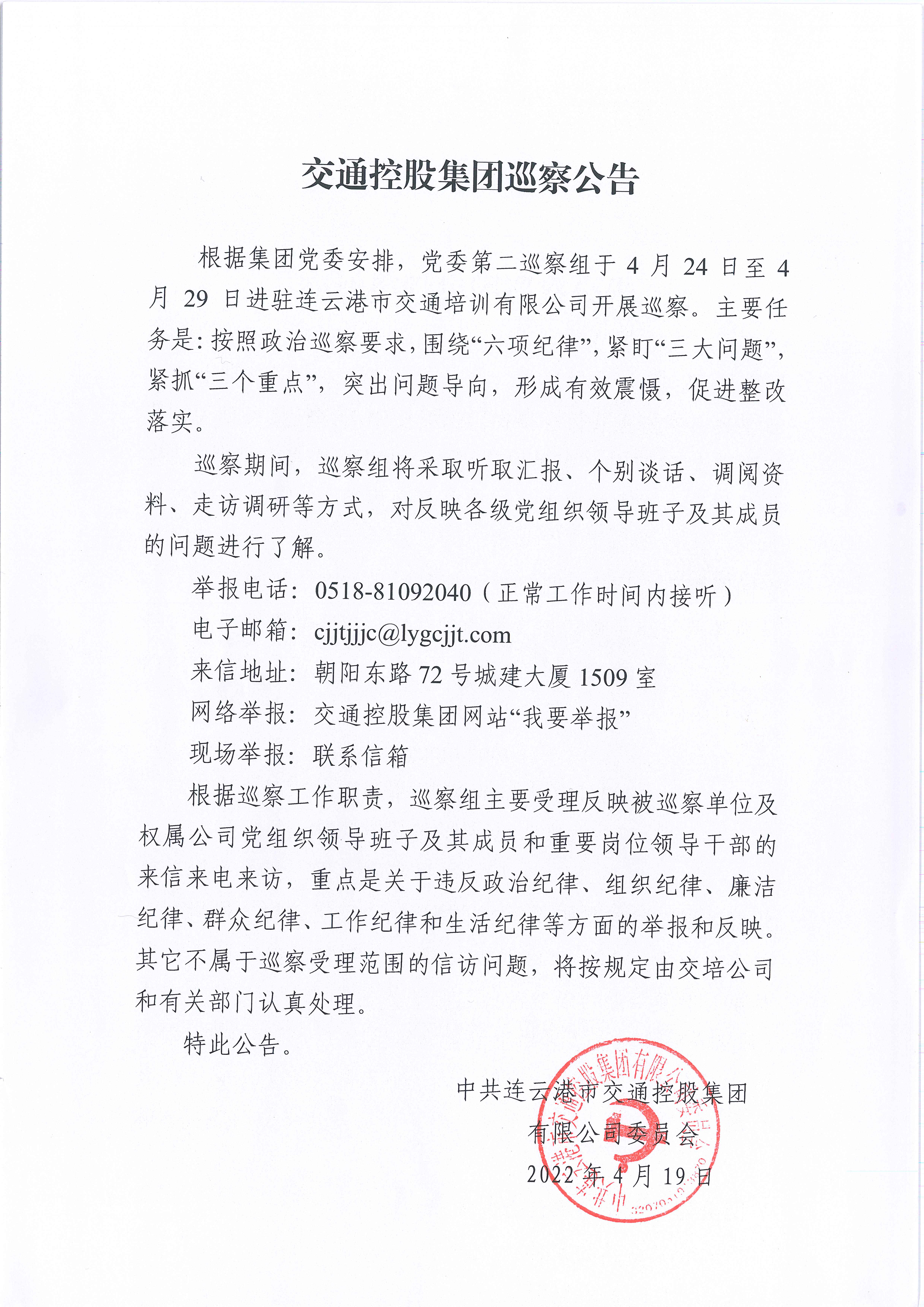 關(guān)于集團(tuán)權(quán)屬交培公司的巡查公告