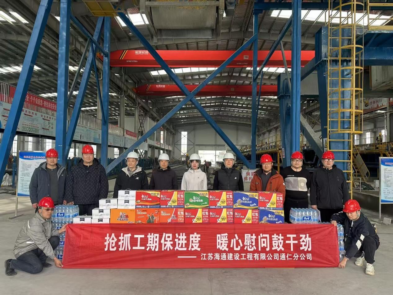 3月23日,海建公司通仁分公司黨總支書記、經(jīng)理劉懿帶領(lǐng)班子成員深入預(yù)制廠事業(yè)部生產(chǎn)一線,扎實(shí)開展工期攻堅(jiān)督導(dǎo)及慰問工作,切實(shí)把組織的關(guān)懷送到一線職工心坎上,凝聚起搶抓工期、攻堅(jiān)奮進(jìn)的強(qiáng)大合力。
