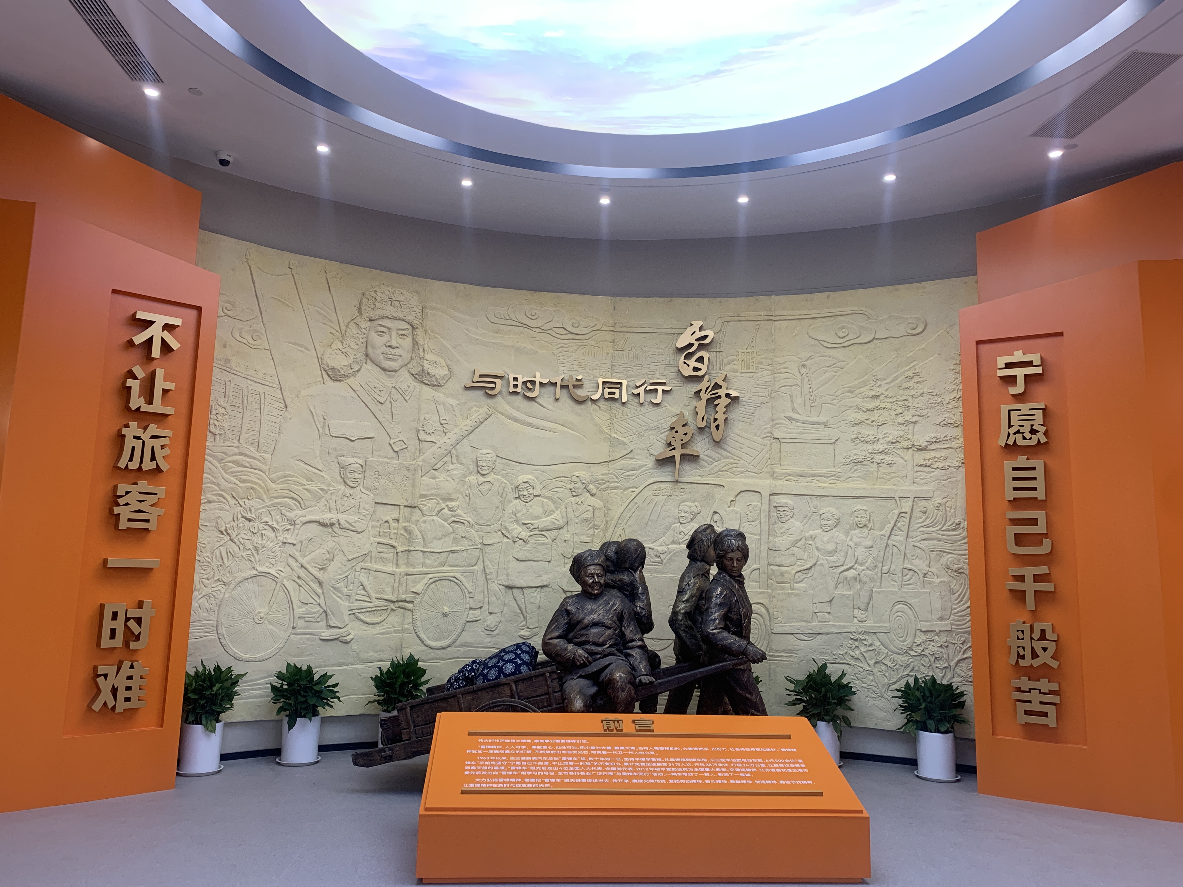 “雷鋒車”事跡陳列館位于江蘇省連云港市新浦汽車總站客運(yùn)站二層,面積由原來(lái)的300平米增至614平米,展覽線路長(zhǎng)度約230米。整個(gè)展館分為四個(gè)部分:在學(xué)雷鋒大潮中誕生、在改革開放中發(fā)展、在新時(shí)代中奮進(jìn)、在傳承弘揚(yáng)中廣大。根據(jù)時(shí)代變遷中“雷鋒車”組的成長(zhǎng)脈絡(luò)和感人故事,通過(guò)標(biāo)志性圖片、數(shù)據(jù)圖標(biāo)、音像視頻、實(shí)物文物和場(chǎng)景造型附以說(shuō)明文字等多種方式,全方位立體展示“雷鋒車”組60年間全心全意為人民服務(wù)的先進(jìn)事跡,讓參觀者擁有更加直觀的觀展體驗(yàn)。