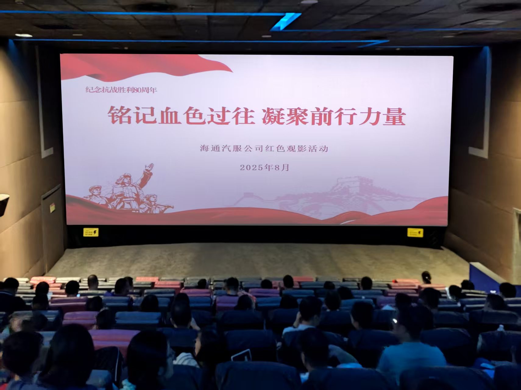 為紀(jì)念中國(guó)人民抗日戰(zhàn)爭(zhēng)暨世界反法西斯戰(zhàn)爭(zhēng)勝利80周年,深化愛(ài)國(guó)主義教育,8月15日,海通汽車服務(wù)公司組織開(kāi)展“銘記血色過(guò)往、凝聚前行力量”主題紅色觀影活動(dòng),通過(guò)觀影引導(dǎo)干部職工重溫抗戰(zhàn)歷史,傳承紅色基因。