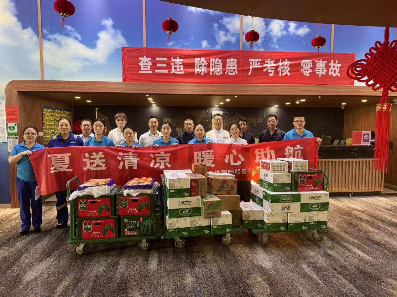 7月24日,云濟船務公司開展“夏送清涼,暖心助航”夏日送清涼慰問活動,將關懷與清涼精準送達“和諧云港”輪全體在崗乘務員身邊。