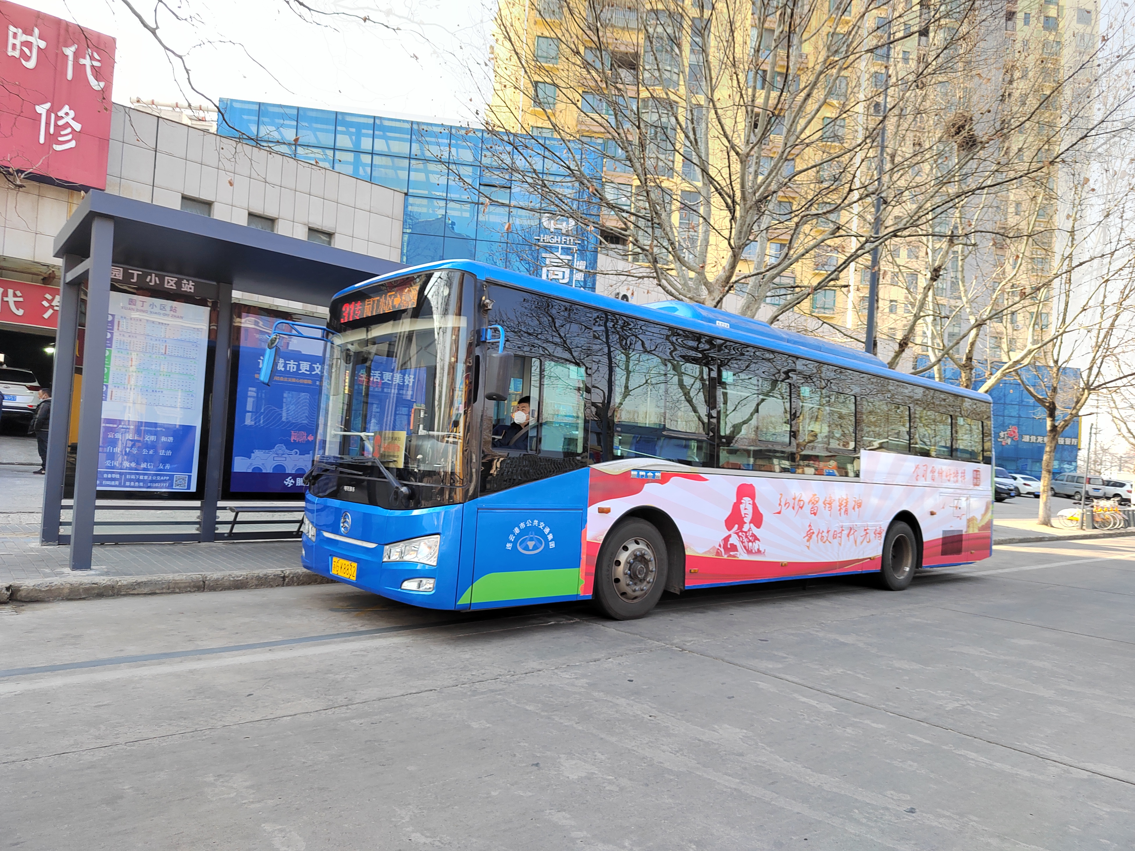 31路公交線全程22個(gè)站點(diǎn),途經(jīng)連云區(qū)主城區(qū)、海濱大道,道路情況復(fù)雜,上下坡道較多,乘客大多數(shù)為海濱大道周邊及連云古鎮(zhèn)居住的老年人。第60個(gè)學(xué)雷鋒紀(jì)念日即將到來,公交集團(tuán)公交事業(yè)二部精心裝扮31路蘇GK8832公交車學(xué)雷鋒主題公交車。車廂外部以“學(xué)習(xí)雷鋒精神 弘揚(yáng)雷鋒精神 爭做時(shí)代先鋒”為主題詞;車廂內(nèi)部從“共產(chǎn)主義戰(zhàn)士 最美奮斗者”“艱苦奮斗的優(yōu)良作風(fēng)”“刻苦學(xué)習(xí)和鉆研理論”“干一行愛一行鉆一行”四大方面宣傳、介紹雷鋒先進(jìn)事跡,弘揚(yáng)雷鋒精神。乘客進(jìn)站臺(tái)前,便能遠(yuǎn)遠(yuǎn)地感受到濃厚的學(xué)雷鋒氛圍,感受到31路“與雷鋒車同行海濱大道文明線”車廂里積極向上的紅色底色。